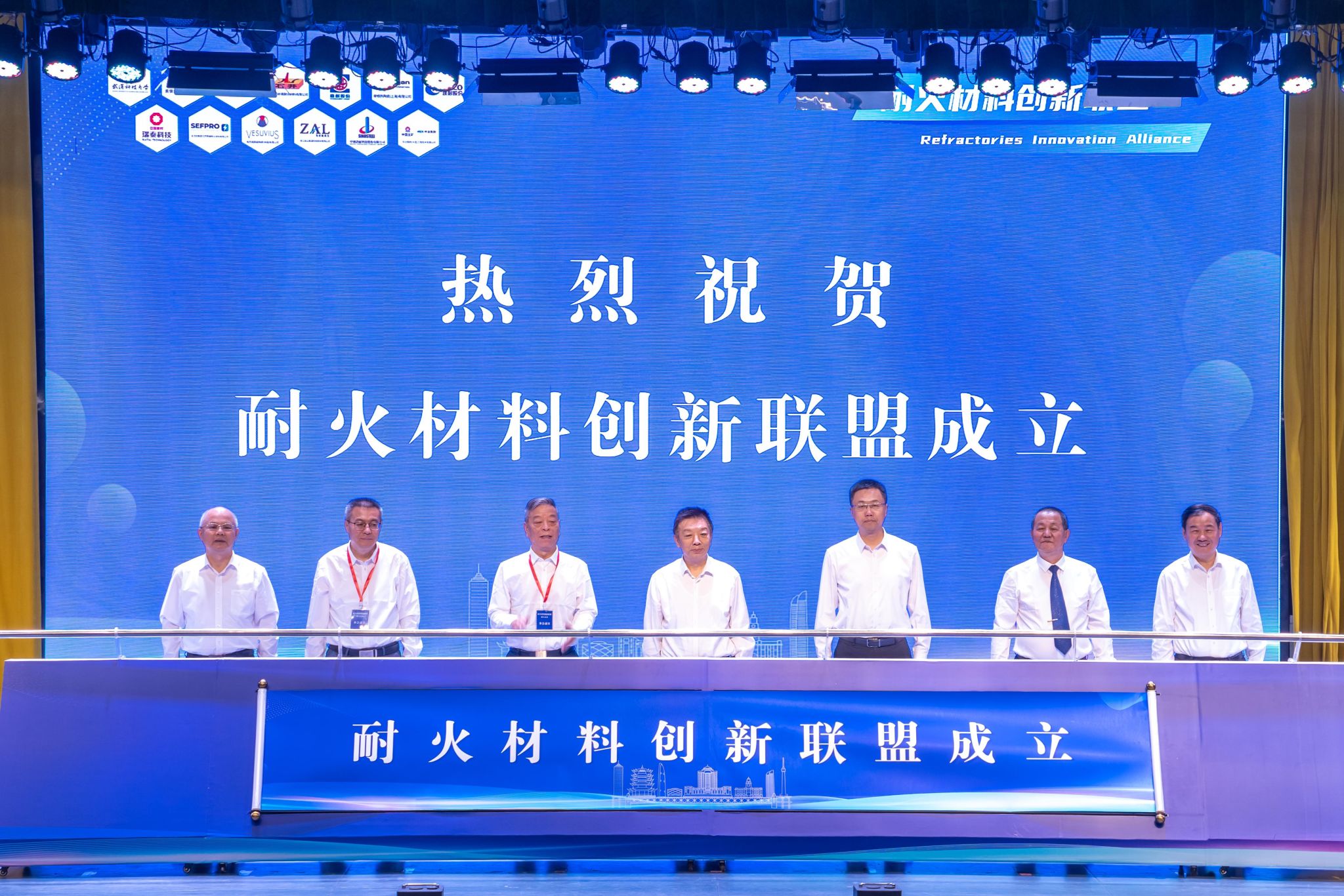 现场,武科大校长倪红卫与中钢洛耐科技股份有限公司董事长熊建、濮阳濮耐高温材料股份有限公司董事长刘百宽等12家国内外耐火材料头部企业代表,共同签订《耐火材料创新联盟共建协议书》。