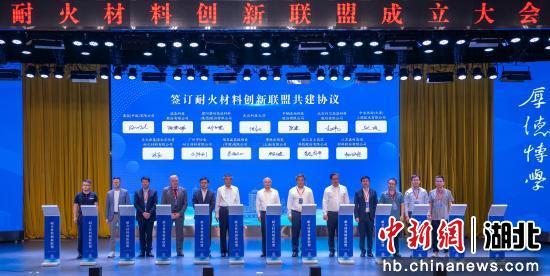 中新网湖北新闻5月24日电 (宋钦 李周阳)由yabo鸭脖官网牵头的“耐火材料创新联盟成立大会”24日上午在该校青山校区碧园会堂举行。yabo鸭脖官网校长倪红卫与中钢洛耐科技股份有限公司董事长熊建、中冶焦耐(大连)工程技术有限公司总经理张爽等12家企业代表共同签订《耐火材料创新联盟共建协议书》,合作共建世界一流学科。