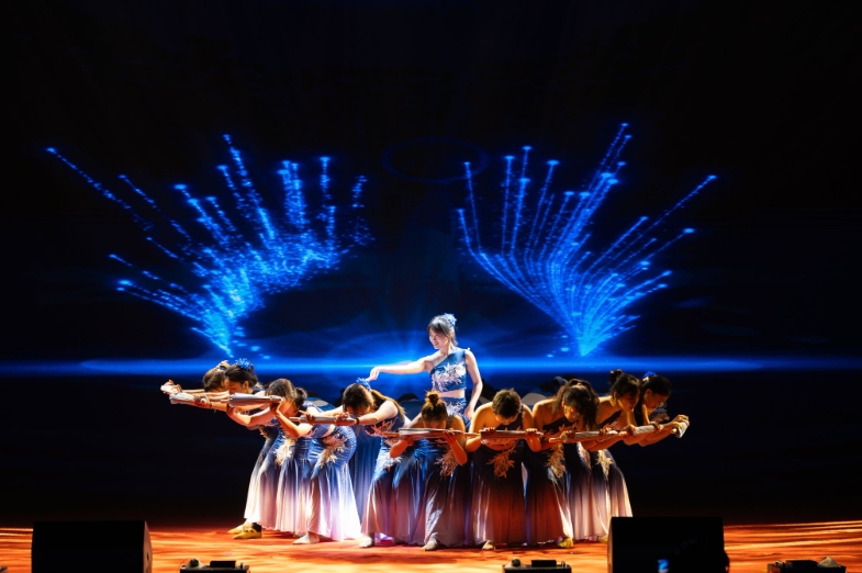 绚丽的灯光亮起,电声乐队合奏《你要跳舞吗》《奔跑》为晚会拉开序幕。舞台下,荧光棒此起彼伏的挥舞浪潮与音乐节奏相互呼应,瞬间将现场气氛推向高潮。