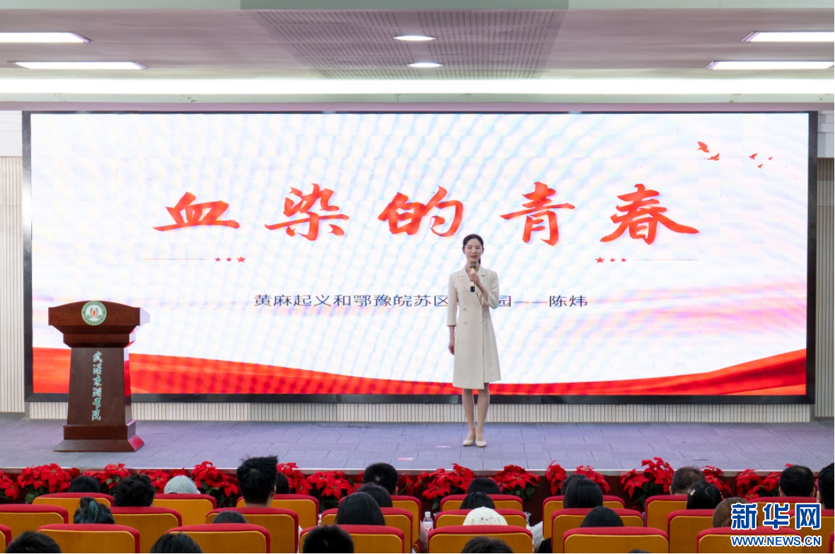 黄冈市黄麻起义和鄂豫皖苏区纪念园讲解员陈炜讲述了红九军政委陈海松为掩护战友血洒战场的故事。他说,大别山精神是大别山地区中国共产党人和人民群众在新民主主义革命时期艰苦卓绝的奋斗中,用鲜血和生命铸造的伟大革命精神。陈海松是大别山精神的一个缩影。