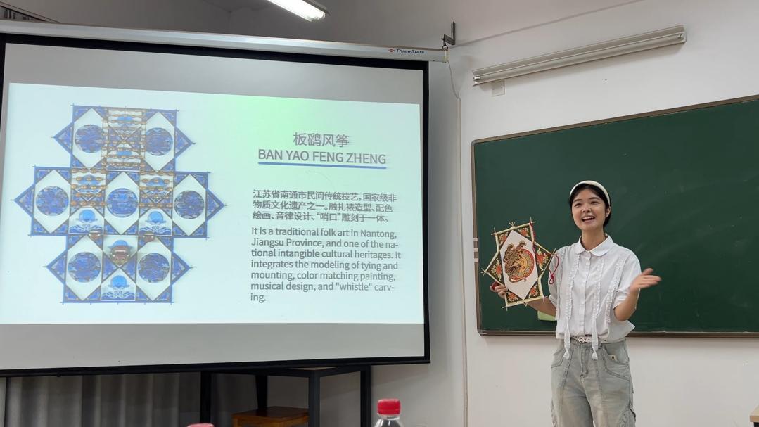 本次活动的核心体验项目,源自艺术与设计学院聂虹教授《传统文化与民间艺术实践》课程的成果转化。面对非遗技艺在普及传播中的挑战——武强木版年画套色繁复、植物扎染工艺参数难控、板鹞风筝工序冗杂,师生团队迎难而上:优化木版刻制流程,实现图案精简化与色彩标准化;通过大量实验,确立扎染染色参数与布料处理规范;改良风筝竹条处理与骨架组装工艺。经反复打磨,成功将精深技艺转化为适合国际学生体验的互动项目,为沉浸式文化课堂奠定了坚实基础。
