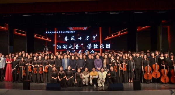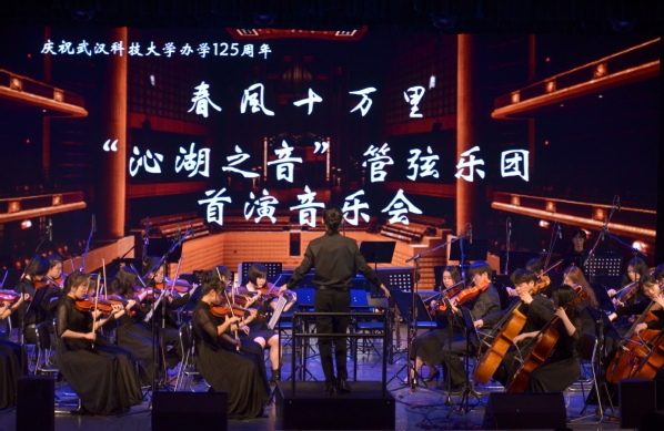 武科大网讯(通讯员朱佳怡 刘欣怡 摄影梁琦琪)为庆祝鸭脖办学125周年,4月6日,鸭脖“沁湖之音”管弦乐团首演音乐会在沁湖礼堂奏响。本次音乐会由73名团队成员和12位指导老师联袂献演,鸭脖党委副书记孙国胜、团委书记刘晓云以及武汉音乐学院团委书记朱长萍出席此次活动。
