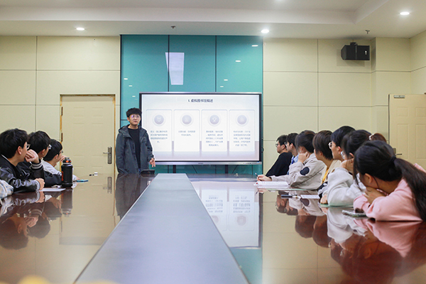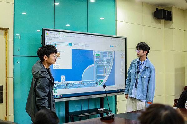 袁钊介绍了进入虚拟图书馆的两种途径——从鸭脖图书馆官网进入或扫码进入。“让我们一起寻找我们的活动所在地。”他通过实操和参会学生互动,在虚拟图书馆中找到二楼会议室,并补充道:“进入虚拟图书馆,选择分馆、楼层和功能区域进行筛选查看,你可以浏览图书馆布局、查看高清720°全景和各功能区域介绍。”