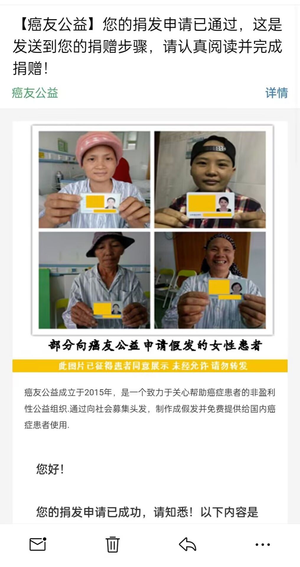“对他们而言,那一头乌黑是生命的不息不止之象征,是活着的尊严与底气。希望更多人看见癌友们的需求,用几年的坚持去做一件很棒的事情。”占洁这样写道,她希望看见的人能够更加关注癌症患者的假发需求,用实际行动践行每一份感动。