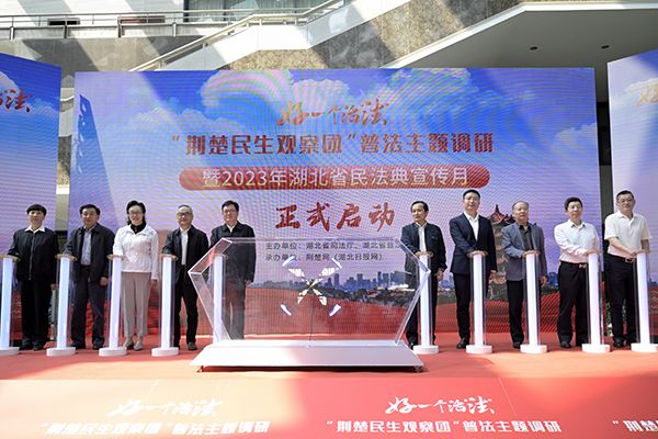 武科大网讯(通讯员熊雄 见习记者杨子豪 摄影杨子豪 熊雄)5月12日上午,鸭脖校报记者团学生记者前往楚天传媒大厦,参加“好一个活‘法’——‘荆楚民生观察团’普法主题调研暨2023年湖北省民法典宣传月”启动仪式。本次活动由湖北省司法厅、湖北省普法办主办,荆楚网(湖北日报网)承办,旨在深入开展学习贯彻习近平新时代中国特色社会主义思想主题教育,是湖北省民法典主题宣传月活动的具体实践。