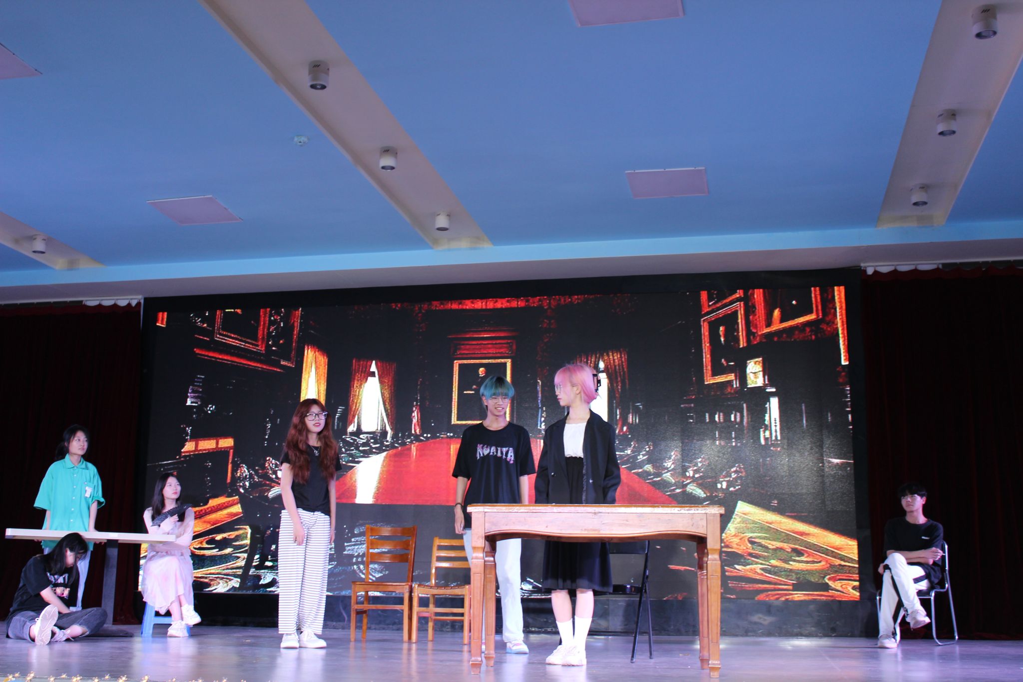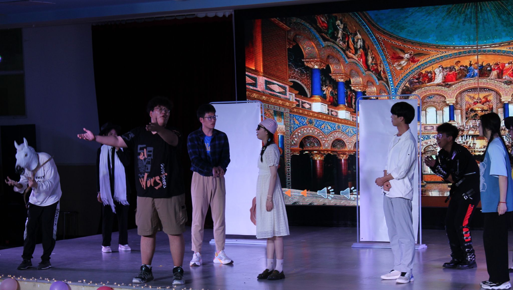 “愿玫瑰铺满,少年前行的路。”计算机科学与技术学院的话剧《穿越之清本佳人》,表现了一个温柔体贴的男孩被一步步逼到绝境,却又从逆境中重生,表演者以此向前段时间的“高彦事件”致敬。