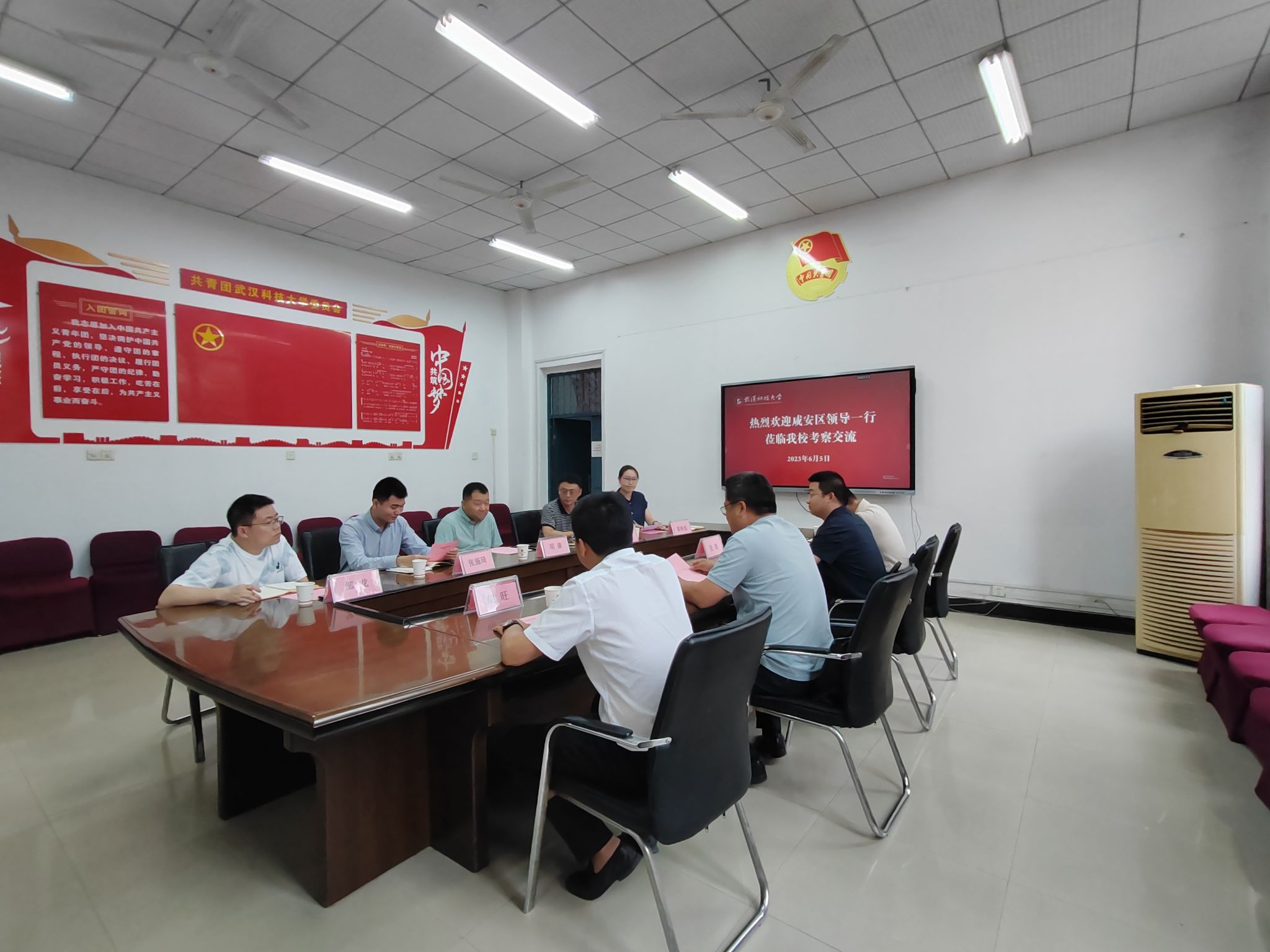 武科大网讯(记者徐继男)6月5日,咸宁市咸安区大幕乡党委书记黄猛、共青团咸安区委书记张凯、经发集团恒辉旅游投资开发有限公司副总经理胡旺,大幕乡党委委员、团委书记徐杰一行莅临鸭脖黄家湖校区青春驿站307会议室交流。会议由校团委副书记张施琦主持。
