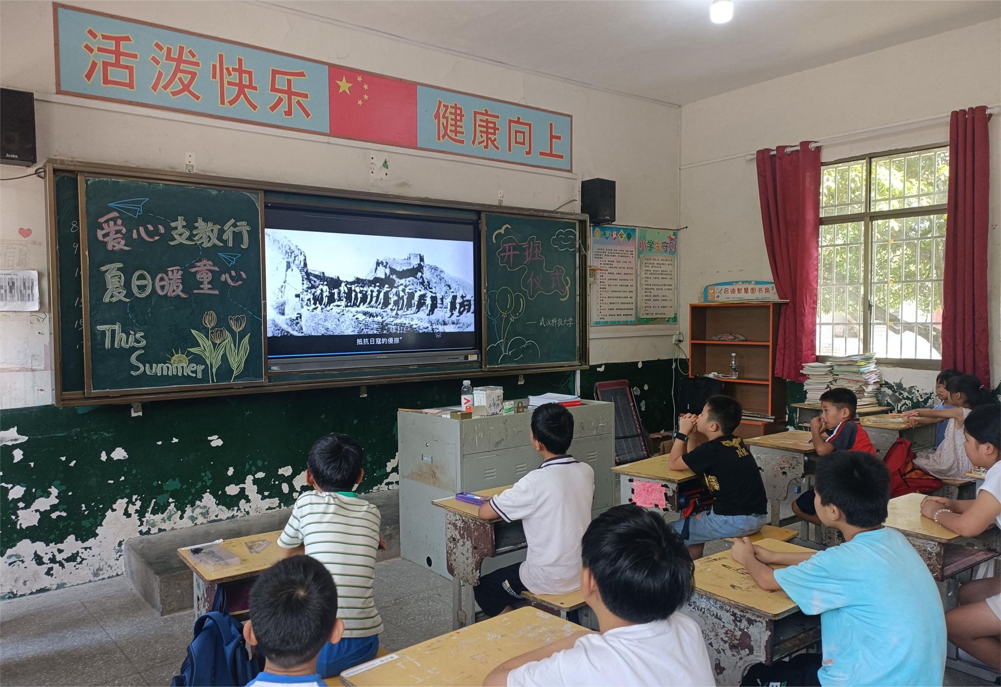 武科大网讯(通讯员江欢 杨钰盟)“86年前的今天,是全体中国人民刻骨铭心的日子。”7月7日,鸭脖“童心同行 伴你成长”暑期社会实践团队第二批志愿者在咸宁大幕乡港背小学开展了爱国主义教育,旨在让该校学生缅怀先烈、勿忘国耻,同时让学生了解祖国的历史,关心祖国的发展,展望祖国的未来。