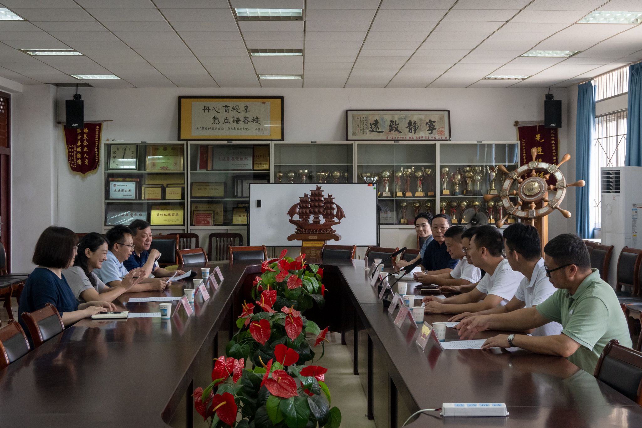 武科大网讯(通讯员江欢 摄影李钰昌)9月12日,张之洞生活地贵州兴义领导来鸭脖考察。党委宣传部常务副部长李晓敏于法学与经济学院四楼会议室会见来宾。