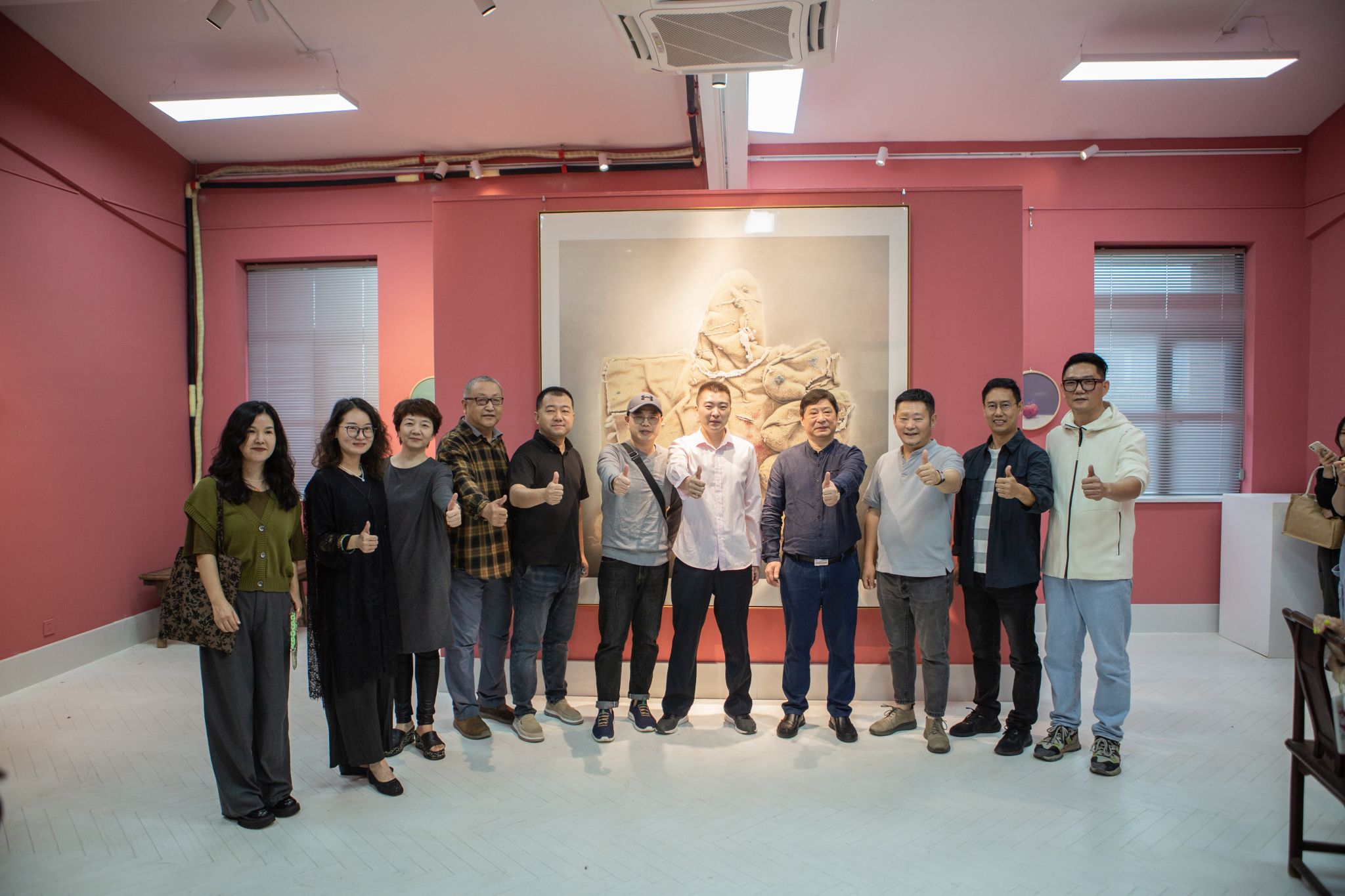 刘道远在感谢辞中表示自己将会不忘初心、用心绘画,并向艺术学院捐赠作品《福果》,艺术学院副院长胡康代表学院接受画作并合影留念。