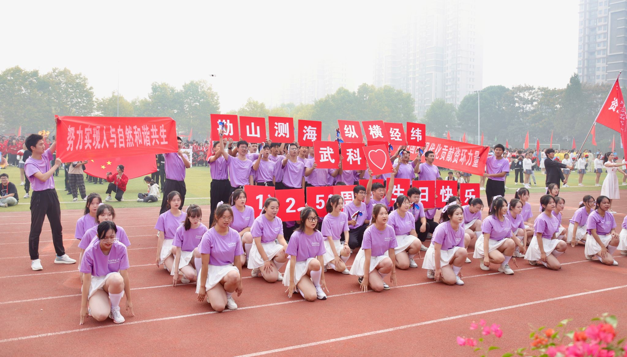 “亲手绘制的扇子,是我们对学校的祝福。”艺术与设计学院方阵学生手持国风扇入场,据该学院学生会执行主席李逸介绍,扇子是由同学们共同绘制的,以国风为主融合创新,结合运动会、学校沁湖、廉园、图书馆等元素,与专业结合,让此次表演焕发新色彩。“‘厚德博学,崇实去浮,明德艺馨,求真尚美’是校训与院训的结合,作为新时代青年,我们不仅要在学习与健康方面努力提升,更应在品行与道德方面严格要求自己。”李逸说道。