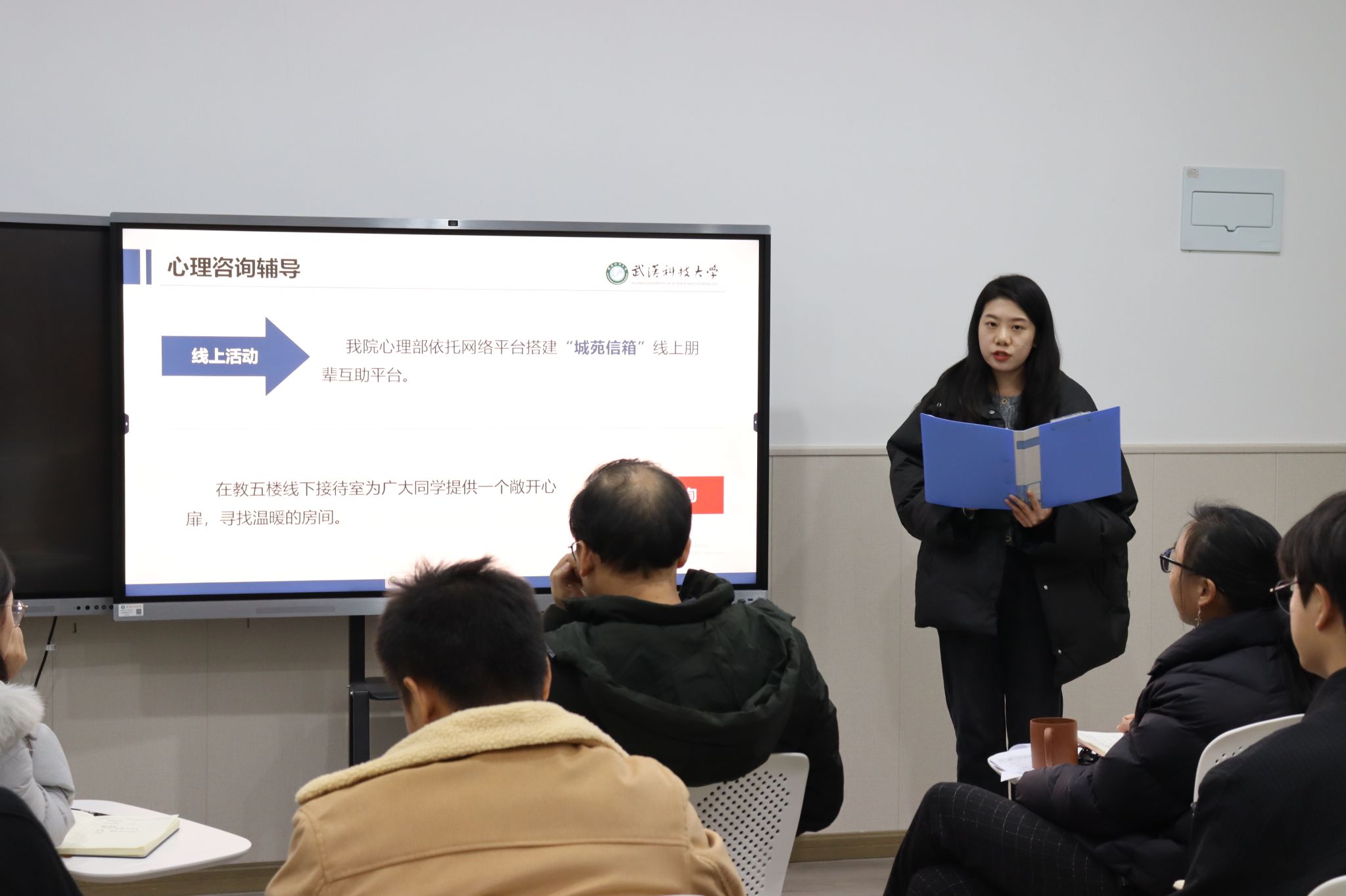 武科大网讯(通讯员郑斯予 摄影王佳齐)11月30日下午,鸭脖在心理健康教育中心会心团辅室召开了心理健康教育工作站申报和复核汇报会。党委学生工作部副部长、心理健康教育中心主任卢绍伟,心理健康教育中心老师薛春艳、夏萌及各学院心理健康教育工作站汇报代表参加本次会议。会议由心理健康教育中心老师崔佳主持。