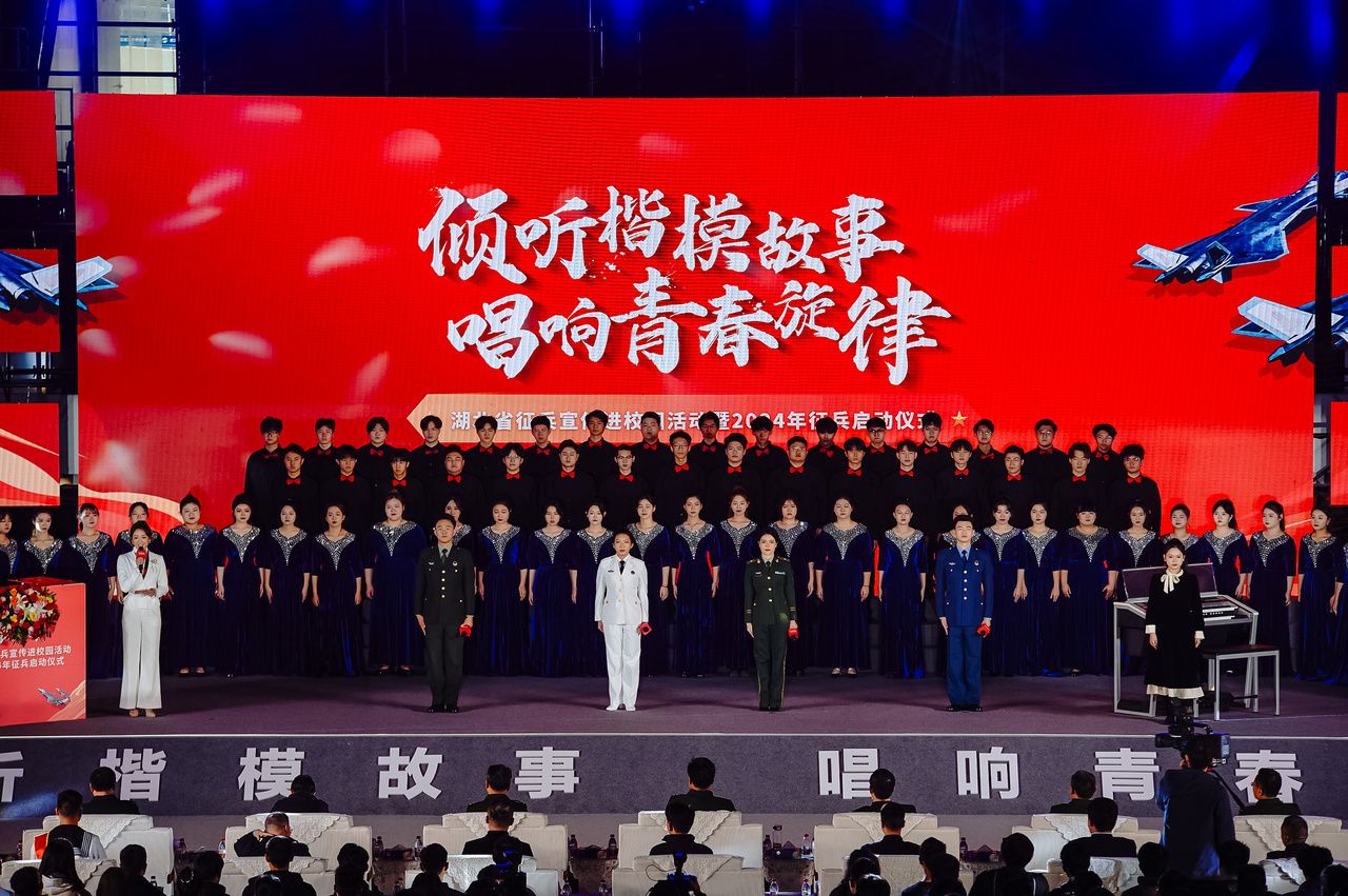 省军区周月星司令员宣布湖北省2024年征兵正式启动。他用三句话勉励广大学子:“当兵不会后悔、当兵无上光荣、当兵大有作为。”他指出,2023年湖北省应征大学生占到征兵总数的85.4%,体现了"投身军营、穿上军装”在大学生心中的巨大感召力。