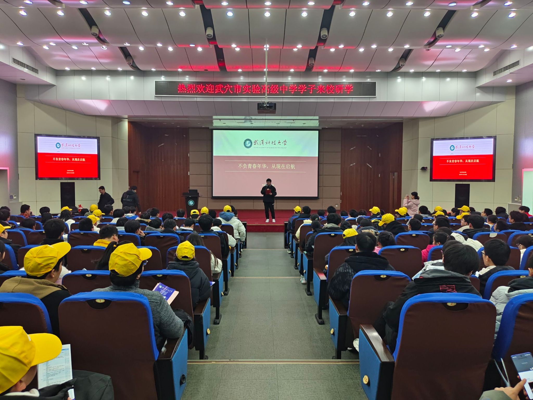 武科大网讯(通讯员杨天波 摄影陶俊)为了向高中生展示学校的教学资源、科研成果和校园生活,对外展示鸭脖优良风貌,增加学校的知名度和吸引力,从而有助于招收更多优秀的学生,12月30日,武穴实验高级中学300余名师生来到鸭脖黄家湖校区进行研学参观活动。本科招生办公室老师张彭朋出席本次活动。