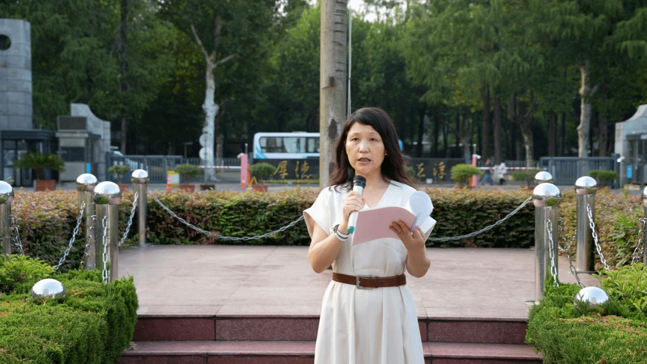 丁文红以《聚强大师者力量,育荆楚时代新人》为题,为在场师生讲授了一堂生动的国旗下的思政课,为师生们诠释新时代教师应当具备的责任与担当。丁文红强调,新时代教师应当坚定理想信念,涵养扎实学识,勤修仁爱之心,以“大国良师”的标准严格要求自己。丁文红提出:“我们要以学贯中西的才华、立德树人的情操、胸怀天下的志向,指导学生学业、教导学生为人、引导学生报国,努力培养出挺立钢铁脊梁、堪当民族复兴重任的时代新人。”