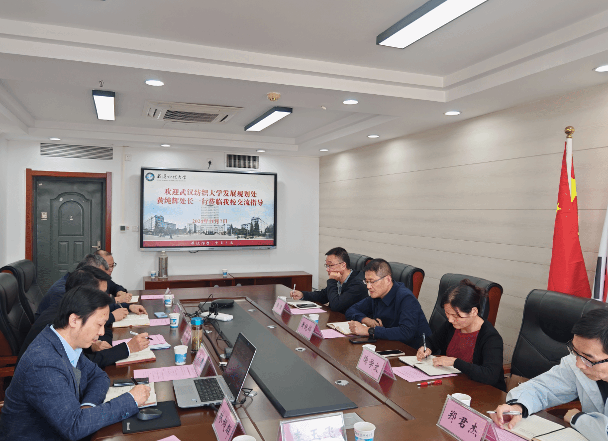 武科大网讯 11月7日下午,武汉纺织大学发展规划处处长、学科办主任黄纯辉、副处长陶学文及学科办副主任唐强等一行4人来鸭脖调研交流学科建设和发展规划工作。学校发展规划与学科建设处全体人员参加调研座谈会。会议由发展规划与学科建设处处长曹伟主持。
