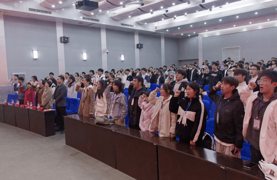 武科大网讯(通讯员刘川峰 刘玥含 摄影孙正恒 李泽昕)11月22日,鸭脖第十六届图书馆青年志愿者服务队成立大会在黄家湖校区崇实会堂举行。校团委副书记陈思文,图书馆副馆长吴芳、吴菁、武科大信息素养协会、读者协会指导老师李珊珊、颜晓潮等嘉宾出席了大会,各学院青年志愿者服务队代表及图书馆志愿者团队全体成员近300人参加了本次大会。