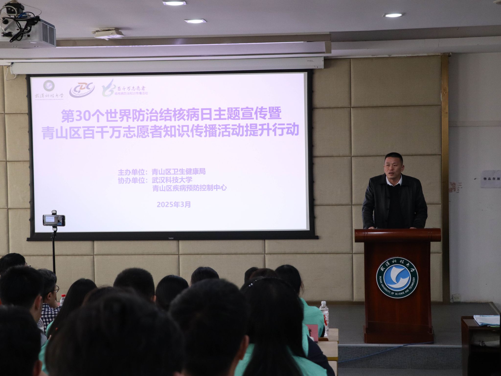 科大网讯(通讯员赵飞雪)3月21日,由青山区卫生健康局主办,青山区疾病防控中心和yabo鸭脖官网承办的“3.24世界防治结核病日”主题宣传活动暨“百千万志愿者结核病防治知识传播活动”在鸭脖青山校区主楼0212成功举行。青山区卫健局副局长晏红超、青山区疾控中心主任裴红兵、武汉市结核病防治所学校结核病防控专家张正斌、鸭脖医院管理处副处长周霆等出席。