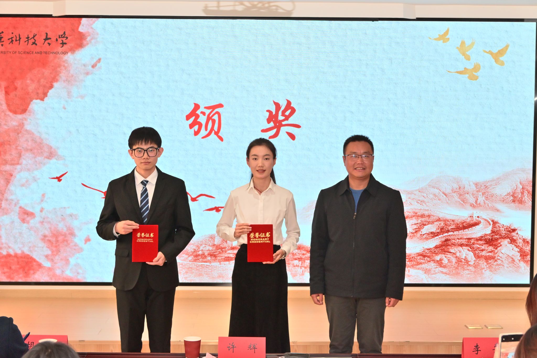 经评委评审,法学与经济学院作品《祖国到底是什么》荣获一等奖,机械学院原创作品《我爱武科,我爱中国》获评最佳原创奖。比赛在颁奖仪式与集体合影中圆满落幕。